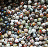 They would produce their first 3/4" test run on May 4th, 2014, with the 'Ole Dawgs' crew. Successive runs, including test runs, as well as other crew runs would occur in rather high frequency of two, to three runs per month in the first year alone. Initial productions were hampered by new equipment issues that created a high number of anomalous patterns and cold roll defects. These patterns were of two opposing, mirrored twists in which many resembled the spiraling horns of a Ram. They were, however, fairly attractive and unique, soon coined "Ram's Head" swirls. An eventual retooling of the machine rollers would greatly reduce the occurrence of Ram's Head swirls, and Dave's Appalachian Swirls, AKA 'DAS' marbles, would continue producing some of the most colorful swirl type glass marbles, seen to this day.